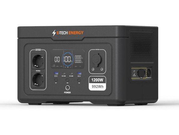 De E-Tech Energy S012 is een compacte, maar krachtige mobiele accu-stroomgroep met een capaciteit van 992 Wh, een continu vermogen van 1200 W en een piekvermogen tot 3600 W.