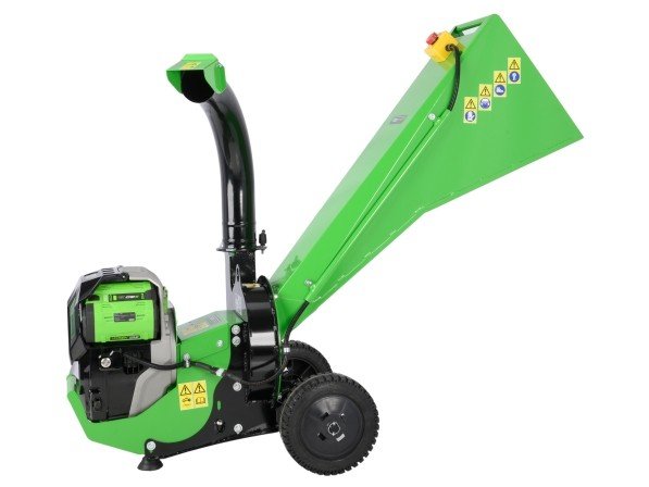 De hoge draaibare afvoerbuis met regelbare afvoerklep maakt het mogelijk het verhakselde materiaal efficiënt te richten, terwijl de ruime invoertrechter en riemoverbrenging zorgen voor veilig en betrouwbaar gebruik.
