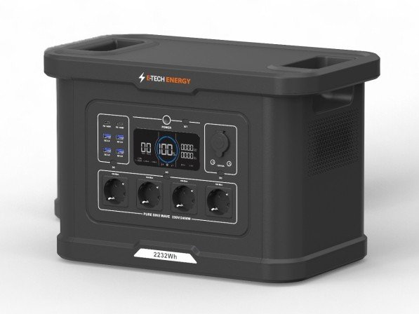 De E-Tech Energy S024 is een krachtige en efficiënte mobiele accu-stroomgroep met een capaciteit van 2232 Wh, een continu vermogen van 2400 W en een piekvermogen tot 4500 W.