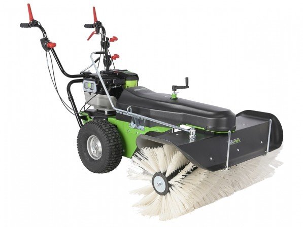De veegmachine wordt aangedreven door een EGO Power+ 56V batterij. De autonomie is 1,3 uur met een 12Ah batterij en 2,6 uur met twee batterijen.