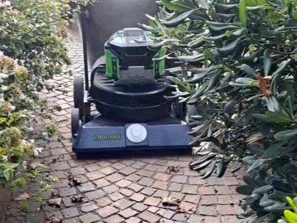 Dankzij het duwmodel met grote achterwielen is de bladzuiger wendbaar en comfortabel in gebruik. Batterij en lader zijn optioneel.
