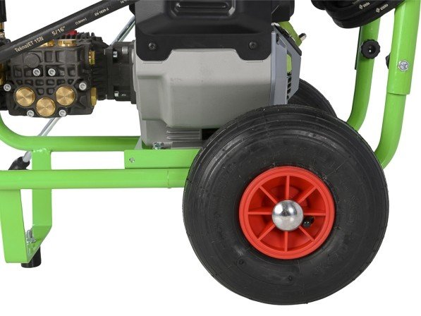 De hogedrukreiniger is voorzien van een stevige trolley voor eenvoudig transport. Een aanzuigset voor reinigingsmiddel is inbegrepen. Twee standen zijn beschikbaar: eco (energiezuinig) en boost (maximale kracht).