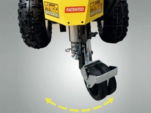 De wielen zijn in verschillende stappen verstelbaar om de afstand van de ingegraven draad tot de rand in te stellen (25 - 27 - 29 - 31 cm).