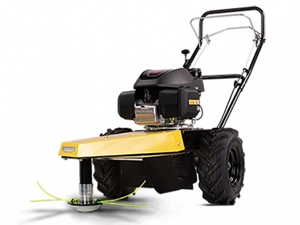 Deze trimmer maaier is ideaal voor het maaien van gras langs kanten, onder hekken en op andere moeilijk bereikbare plaatsen. Dankzij de grote wielen met tractiebanden is hij ook geschikt voor oneffen terrein.