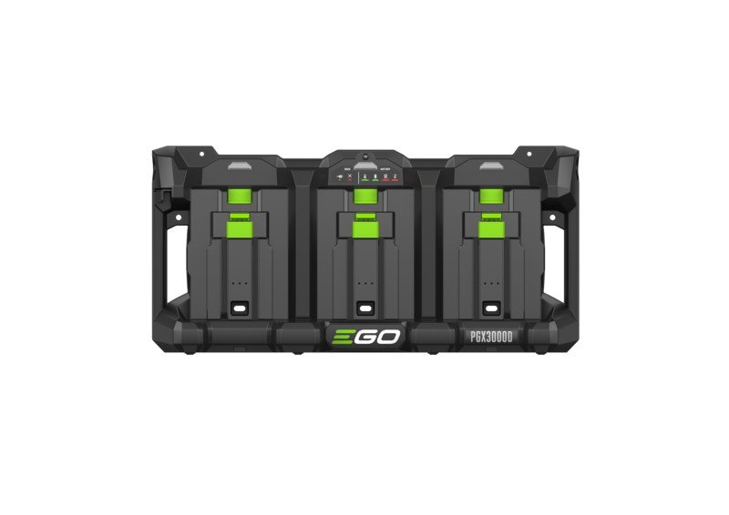 De EGO PGX3000D 3-poortsnellader is ontworpen om te worden aangesloten op de EGO Pro X 1600W Power Hub. Laad tot drie EGO 56V ARC Lithium accu’s tegelijk op. Een LED-indicator geeft duidelijk de laadstatus weer.