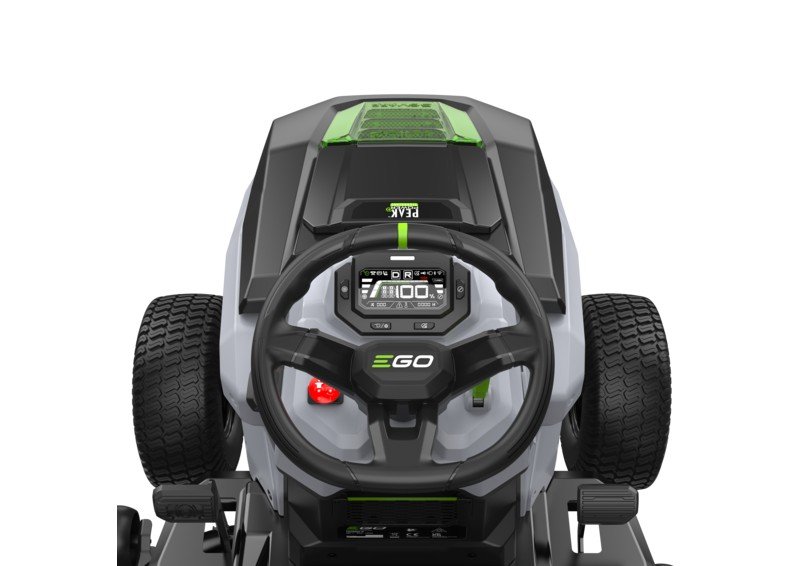 De EGO 98 cm tuintractor biedt efficiënte grasopvang dankzij de grote opvangbak van 300 liter, waardoor de maaitijd wordt gemaximaliseerd. Deze tuintractor levert hetzelfde vermogen als een 22 pk benzinemotor, maar dan met minder lawaai en zonder uitstoot.