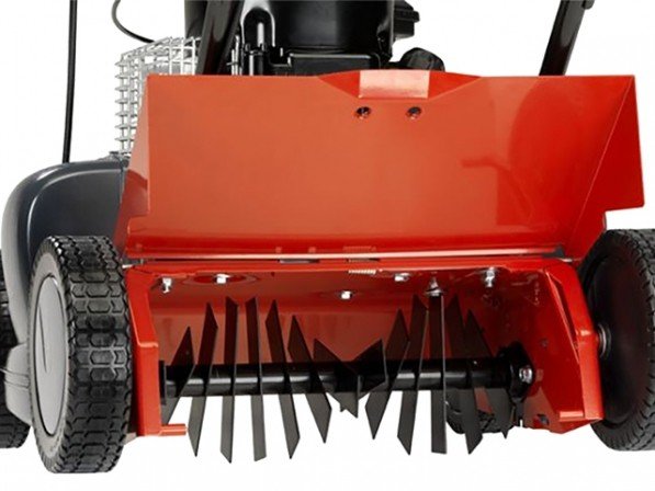 De rotor met 15 stalen vaste messen zorgt voor een grondige verwijdering van mos en gazonvilt. Dankzij de centrale diepte-regeling kunt u de machine eenvoudig aanpassen aan de behoeften van uw gazon.