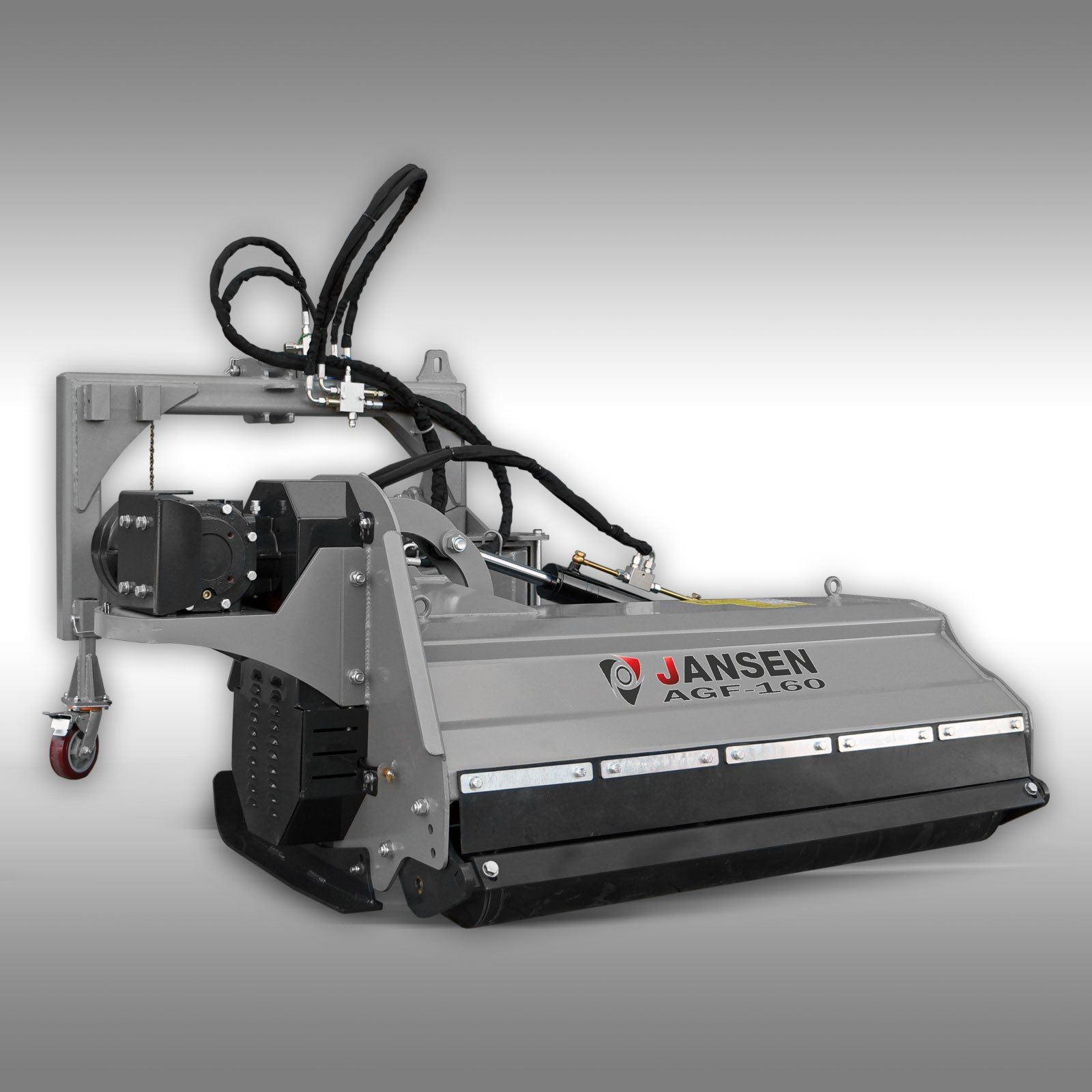 De Jansen AGF-160 bosmaaier kenmerkt zich door zijn robuuste constructie. De zijdelingse plaatsing van het maaiwerk maakt het eenvoudig om sloten, geulen en heuvels te maaien.