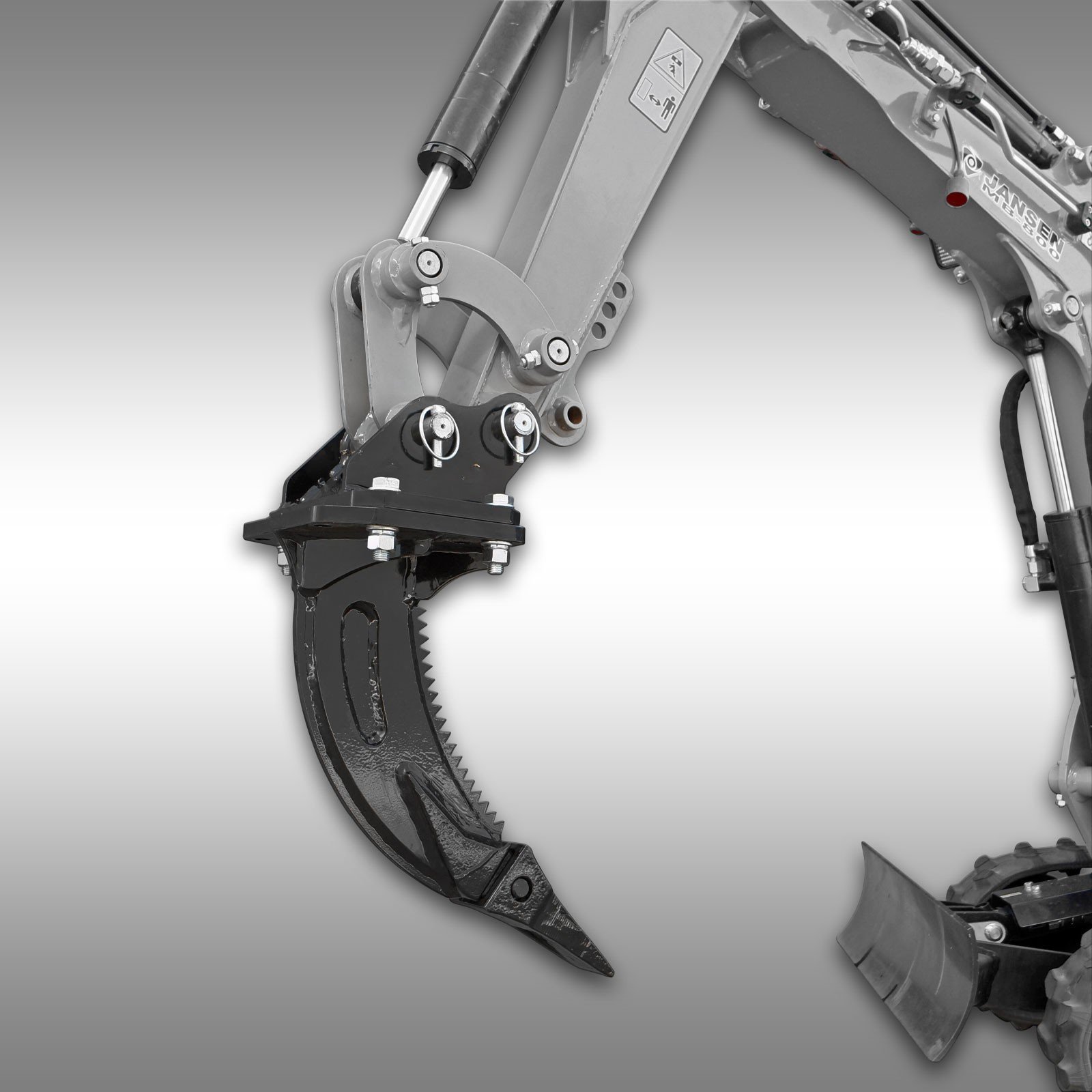 De een-tand ploeg is speciaal ontworpen voor de Jansen MB-800 minigraafmachine. Het is een ideaal gereedschap voor het bewerken van grond en het creëren van sleuven. De ploeg is robuust en duurzaam, waardoor hij geschikt is voor diverse werkzaamheden.
