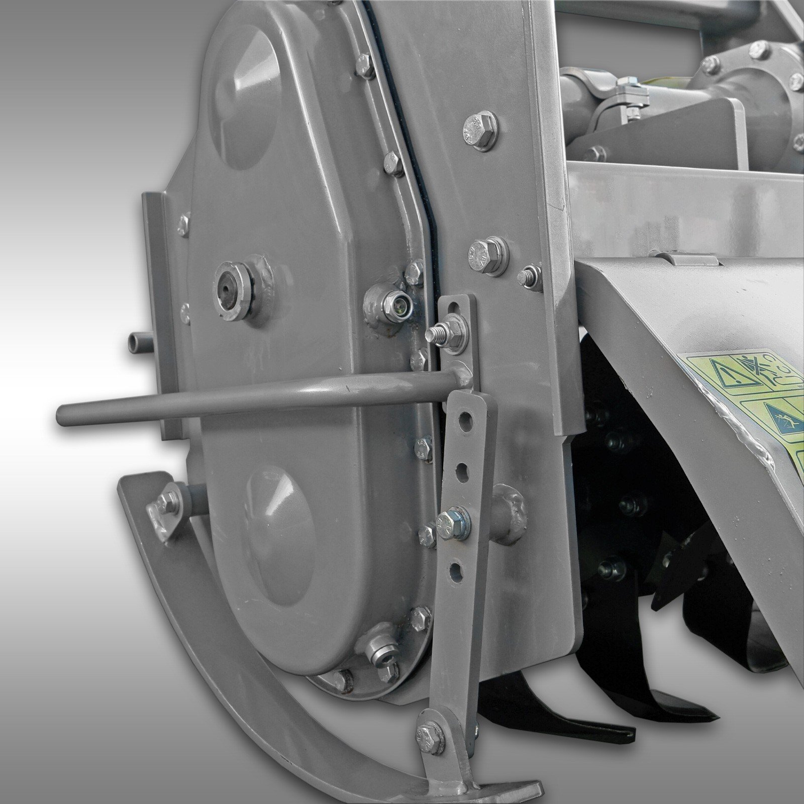 De werkbreedte bedraagt ongeveer 125 cm en de freesdiepte is maximaal 16 cm, instelbaar met de zijdelingse glijstukken. De robuuste freesmessen zijn op een stevige rotoras aangebracht. De grondfrees wordt aangedreven door de meegeleverde aftakas en in de driepuntsophanging van de tractor gehangen (cat. I + cat. II). Deze grondfrees is ideaal voor compacte en smalspoortrekkers met een vermogen van minimaal 20 pk.