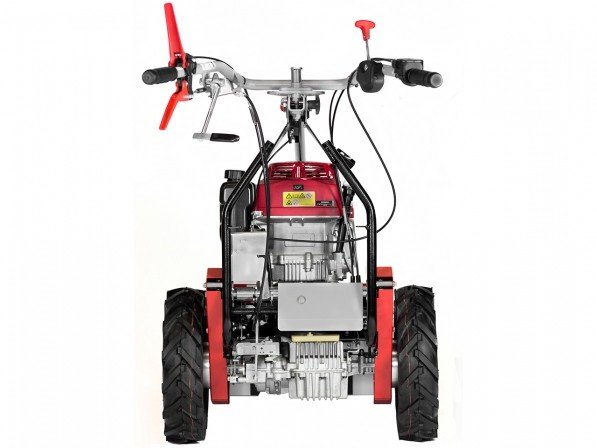 - Hydrostatische aandrijving Traploze snelheidsregeling vooruit (0-6 km/u) en achteruit (0-2 km/u).