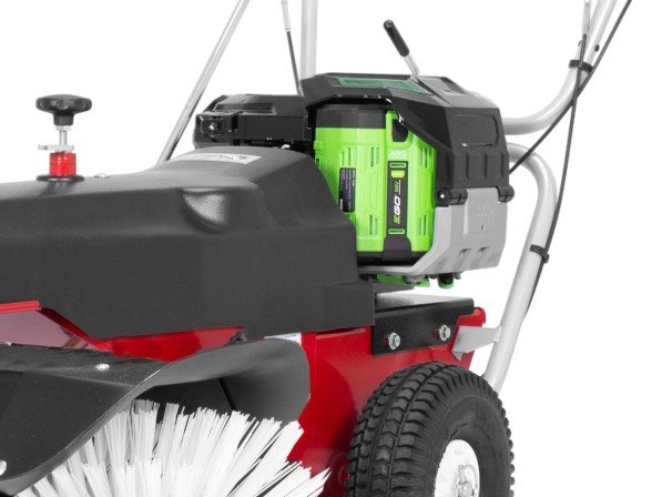 De veegmachine wordt aangedreven door een betrouwbare EGO PU2700 Power+ 56V-motor, die zorgt voor consistente kracht en een uitzonderlijke autonomie. Met een autonomie van 1,3 uur met een 12Ah-batterij, uitbreidbaar tot 2,6 uur met twee batterijen (batterijen en lader optioneel verkrijgbaar), kan je langdurig werken zonder onderbrekingen.