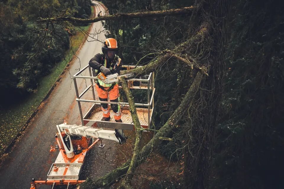 Waarschuwing: deze speciale kettingzaag is enkel bedoeld voor professionals die zijn opgeleid in de boomverzorging. Gebruik zonder de juiste training kan leiden tot ernstige letsels.