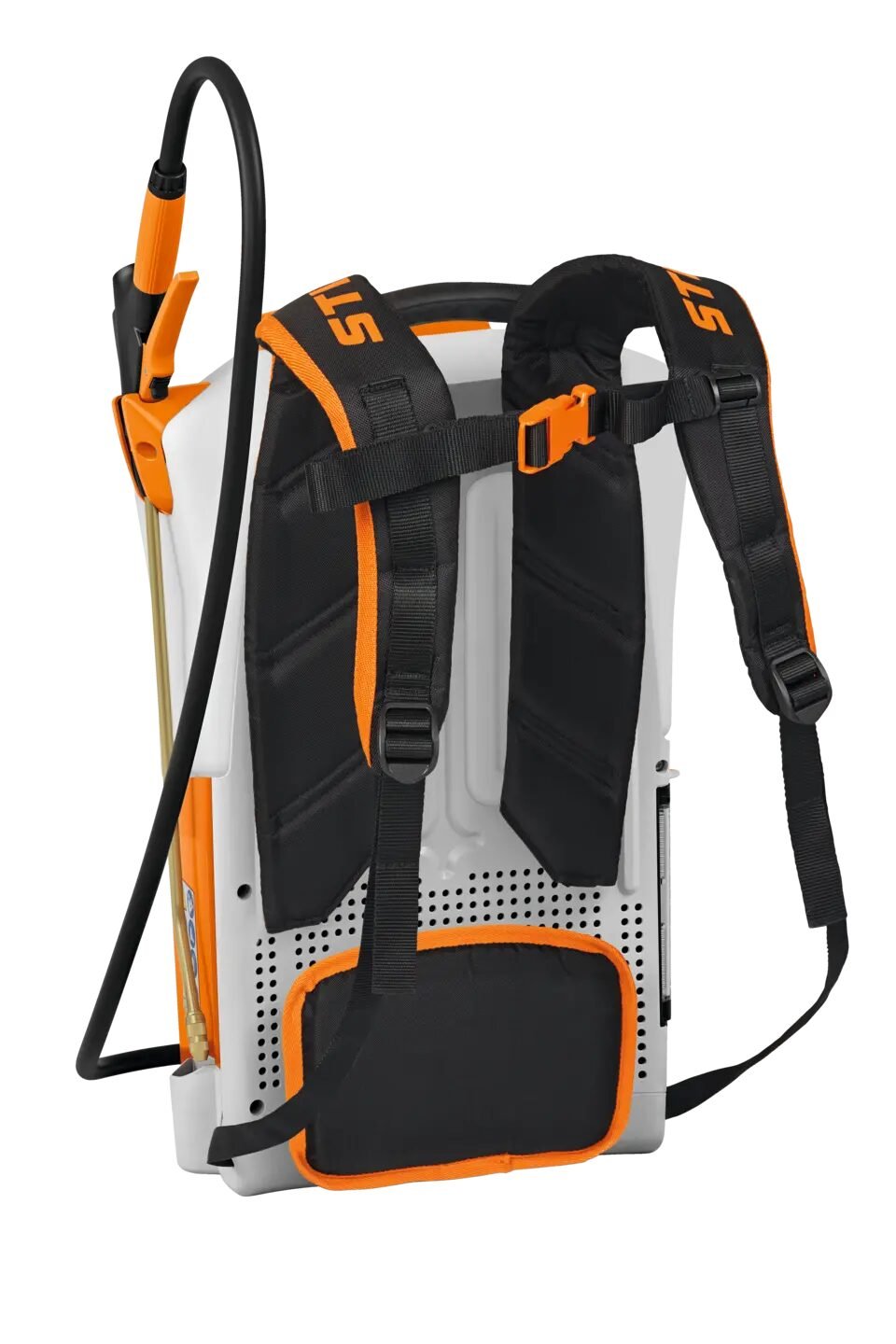 Dankzij de holle, conische mond van messing kan je met de STIHL SGA 85 accurugsproeier de vloeistof heel nauwkeurig aanbrengen. Het ingebouwde filterelement voorkomt dat vuil uit het reservoir in de spuitlans terechtkomt. Dankzij een houder op de STIHL heupgordel, die optioneel verkrijgbaar is voor de SGA 85, berg je de spuitlans veilig op tijdens het werk.