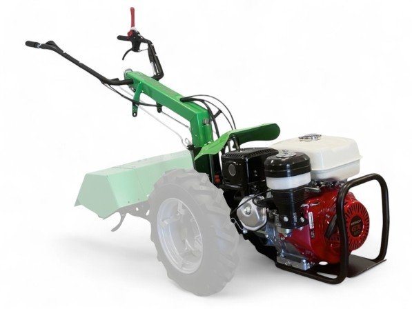 De 180° draaibare stuurhendel, verstelbaar in hoogte en zijdelings, is voorzien van een anti-vibratiesysteem, wat langdurig werken comfortabel en efficiënt maakt. Let op: dit is een basismachine en wordt geleverd zonder wielen, bakfrees en snelkoppeling.