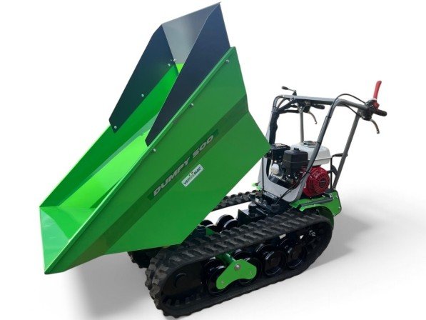 De Verdemac DUMPY 500 H is een krachtige en veelzijdige dumper, uitgerust met een Honda GX200 OHV-motor (198 cm³) en een laadcapaciteit van 500 kg. Met zijn compacte werkbreedte van 63 cm is hij ideaal voor gebruik in krappe ruimtes en op uitdagende terreinen.