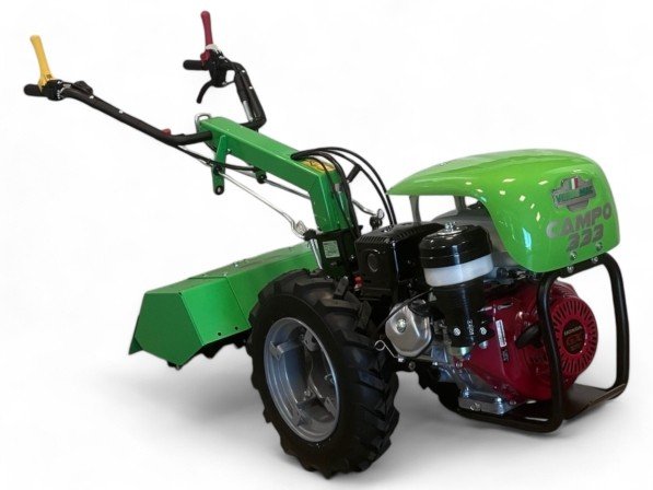 De Verdemac CAMPO 333 tweewielige trekker is een robuuste en veelzijdige machine, aangedreven door de betrouwbare Honda GX270 OHV motor (270 cm³). Met 3 versnellingen vooruit en 3 achteruit, en een differentieel met wielblokkering, biedt deze trekker optimale controle en prestaties, zelfs in uitdagend terrein.