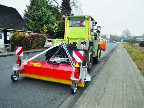 De axiaalborstel wordt geleverd inclusief driepuntsophanging voor eenvoudige montage aan een tractor. De twee zwenkwielen achteraan en één vooraan zorgen voor een goede manoeuvreerbaarheid.