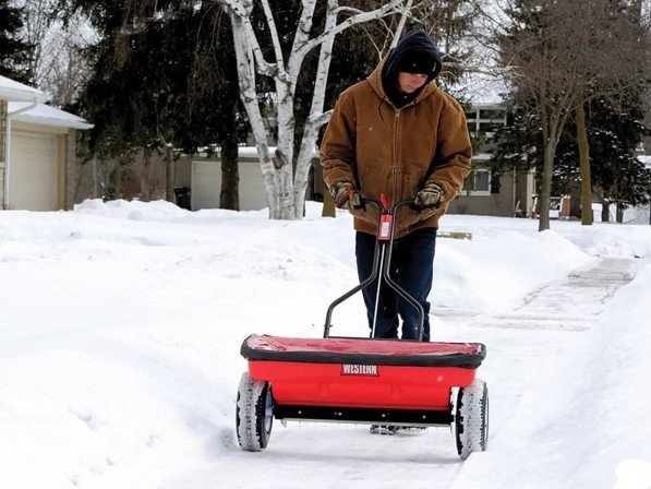 De Western WB-160D is ontworpen om zout rechtstreeks en nauwkeurig op de grond te plaatsen, ideaal voor smalle voetpaden en gebieden waar je planten wilt beschermen.